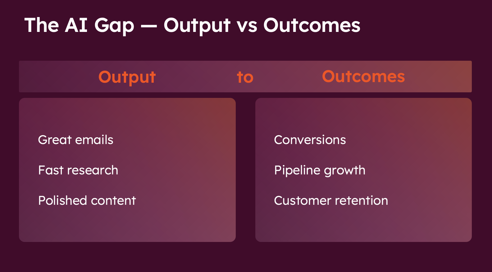 From generating outputs → to driving outcomes.